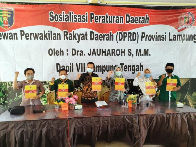 BANDARLAMPUNG, BL — Anggota DPRD Provinsi Lampung Jauharoh Haddad melangsungkan kegiatan Sosialisasi Peraturan Daerah (Sosperda) Nomor 03 Tahun 2020 tentang Adaptasi Kebiasaan Baru (AKB), di Desa Terbanggi Agung, Kecamatan Gunung Sugih, Kabupaten Lampung Tengah, Sabtu (03/04/2021).