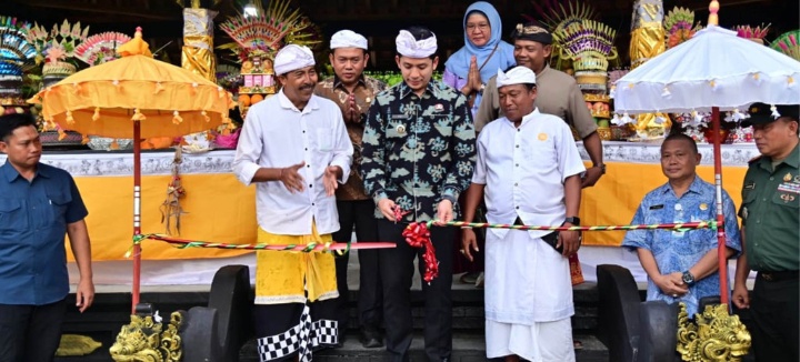 Dalam sambutannya, Bupati Egi menyampaikan apresiasi atas gotong royong masyarakat yang turut berperan dalam pembangunan Balai Banten dan Pura Puseh tersebut.