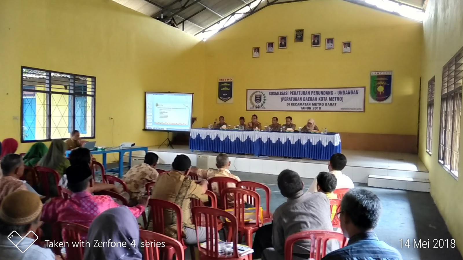 Metro – DPRD Kota Metro menggelar Sosialisasi Perundang-undangan dengan tiga Peraturan Daerah (Perda) Kota Metro, dengan menghadirkan narasumber dari dinas terkait, di Kelurahan Ganjar Agung Metro Barat, Senin (14/05/2018).