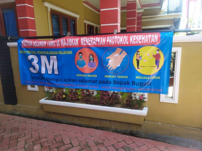 Oleh karena itu, sebagaimana ketentuan protokol covid 19 para hadirin bisa menerapkan 3 M, mencuci tangan, memakai masker dan menjaga jarak. “mari sama sama kita jaga jarak untuk mencegah penyebaran virus corona disease 19″ingatnya.