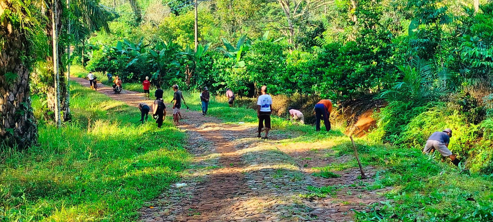 Pada Jum’at, Kadus dusun 03 Rojiwan, kadus dusun 06 Amad Sukur, kadus dusun 10 Juhrak, dan kadus dusun 12 Fitri bersama warga gotong royong diruas jalan Kabupaten Way Kanan.