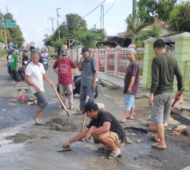 Lampung Utara – Warga Kelurahan Tanjung Harapan, Kecamatan Kotabumi Selatan, Kabupaten Lampung Utara, kembali turun tangan memperbaiki jalan rusak di wilayah mereka. Untuk ketiga kalinya, warga bergotong royong menambal lubang besar di Jalan Kapten Mustofa, tepatnya di depan Gang Merak IV, Minggu (15/3/2026).