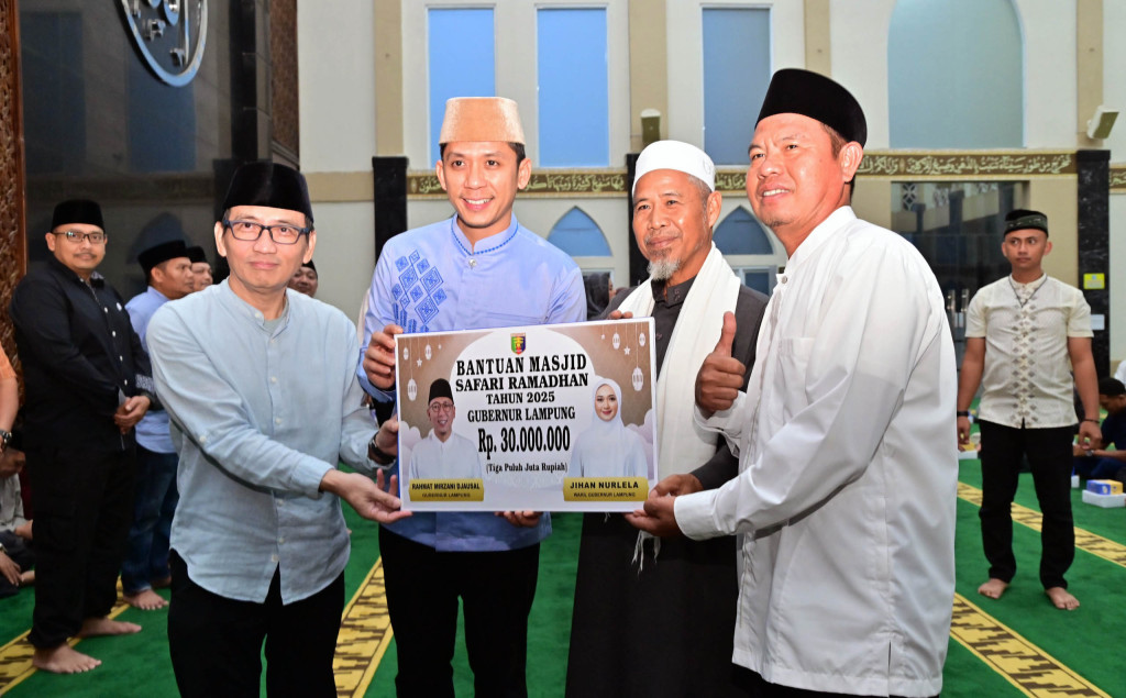 Dalam Safari Ramadan itu, Bupati Egi bersama Kepala Dinas ESDM Pemprov Lampung, Febrizal Levi menyerahkan bantuan masjid senilai Rp30 juta serta bantuan untuk anak yatim piatu dari Gubernur Lampung Rahmad Mirzani Djausal. (Rls)