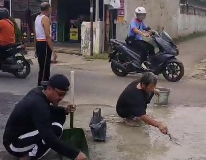 Aksi spontan itu dilakukan, Sabtu (18/10/2025), setelah kondisi jalan yang merupakan jalur kabupaten itu kian memprihatinkan. Lubang besar di tengah badan jalan membuat banyak pengendara motor maupun mobil terjebak, bahkan menyebabkan kerusakan kendaraan.